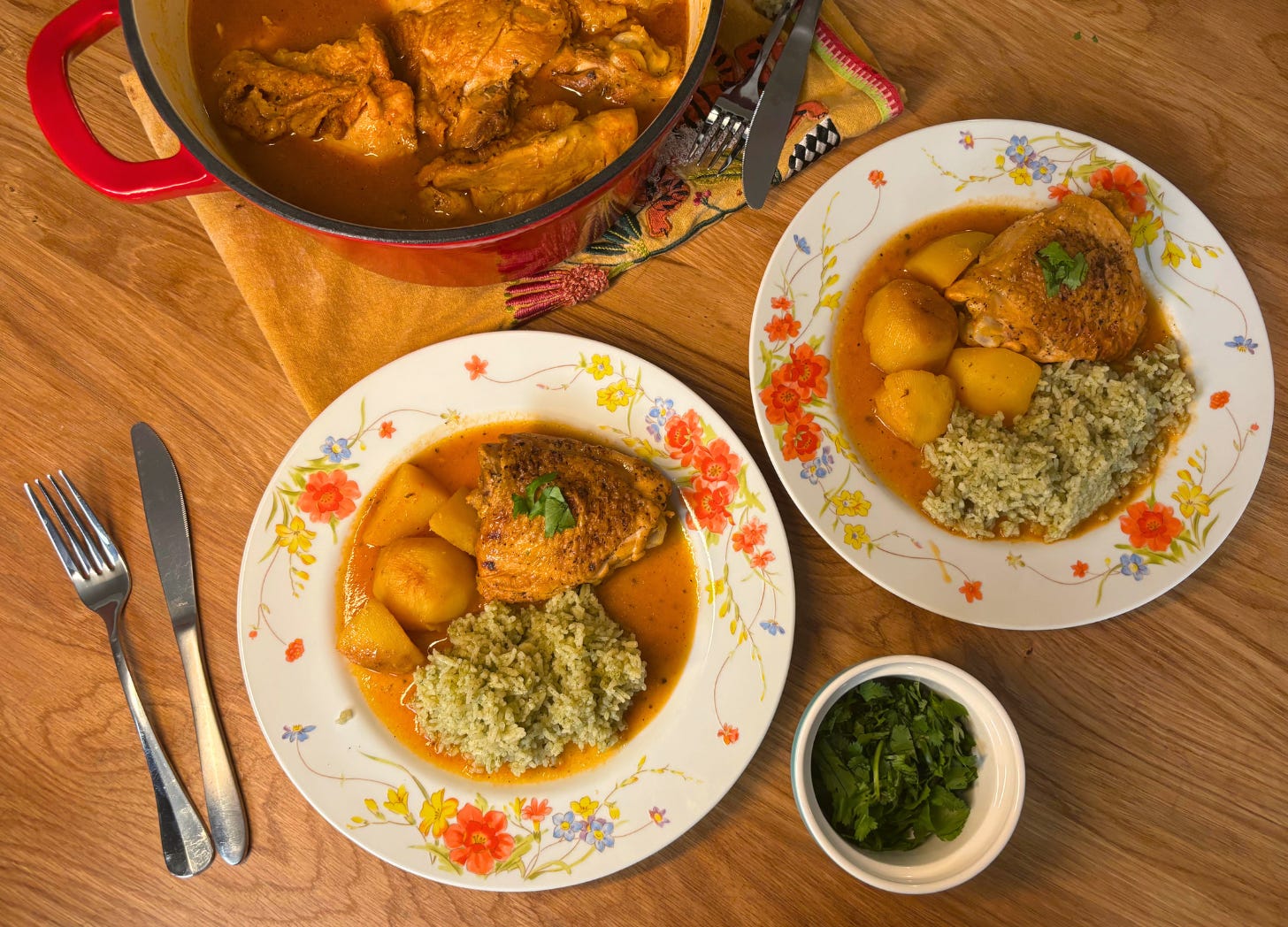 Pollo Guisado (Mexican Chicken Stew) with Cilantro Rice