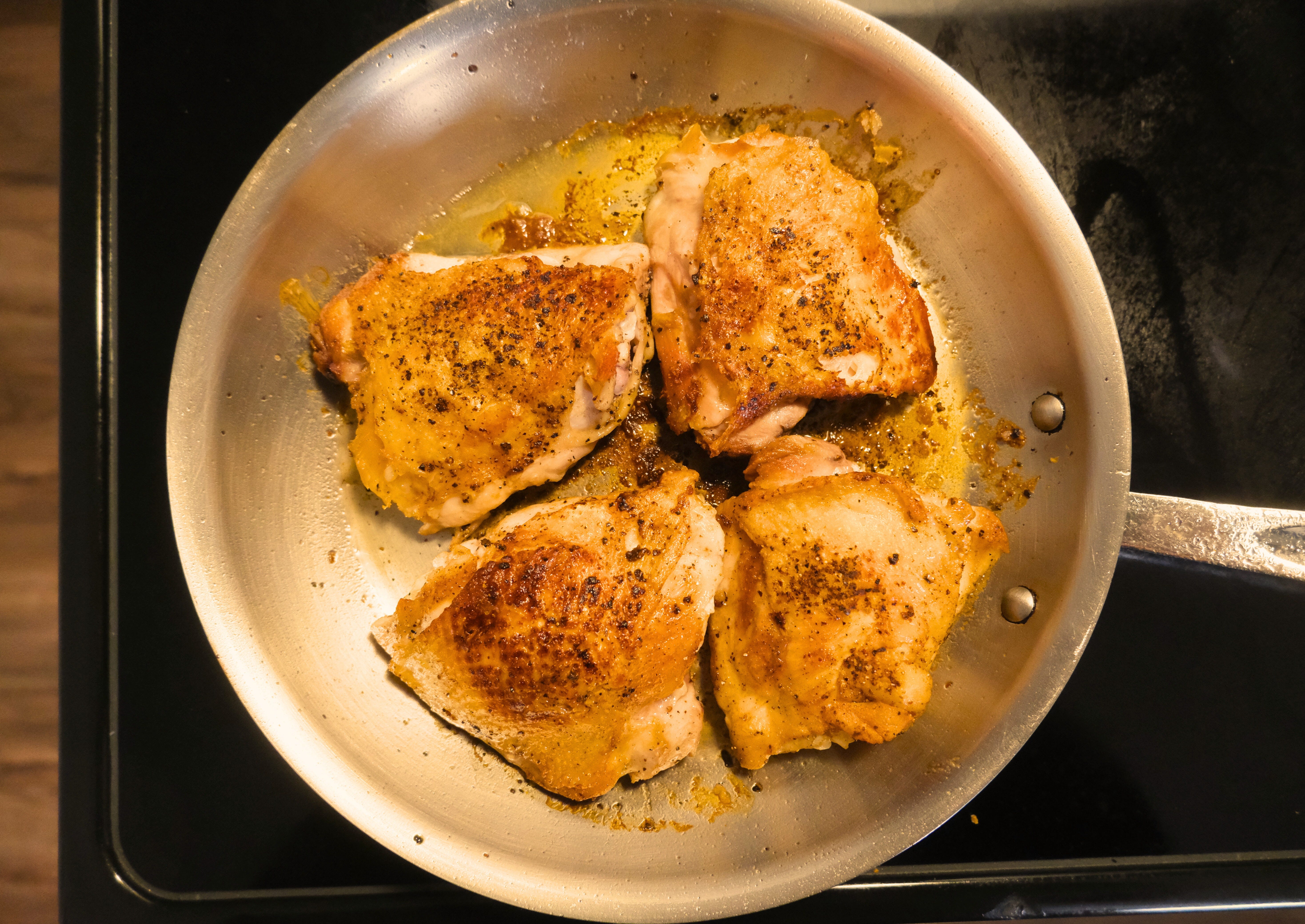 Pat the chicken dry and season generously with salt and pepper on all sides.Brown the chicken