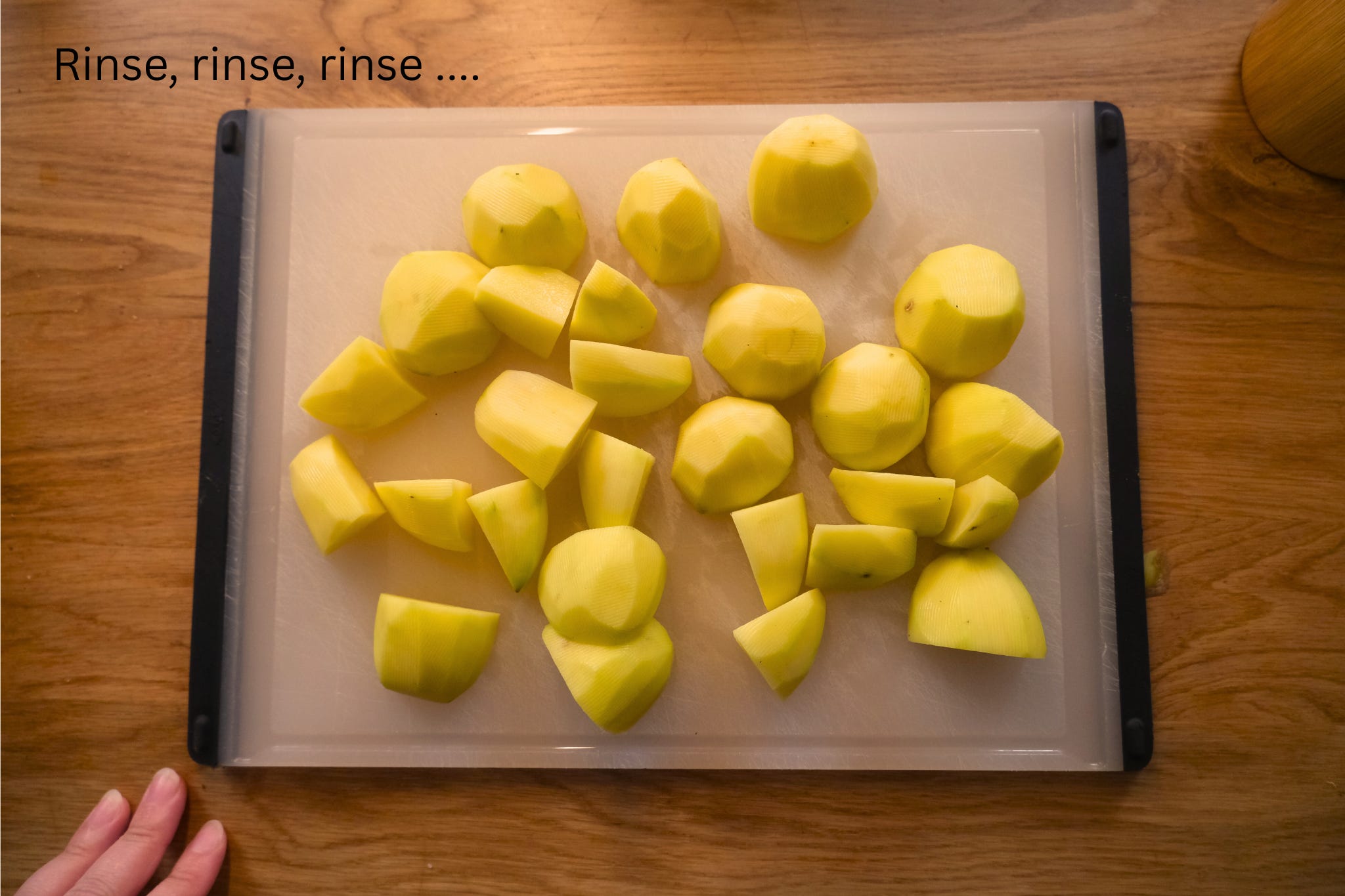 While the chicken is browning, peel and cut the potatoes.